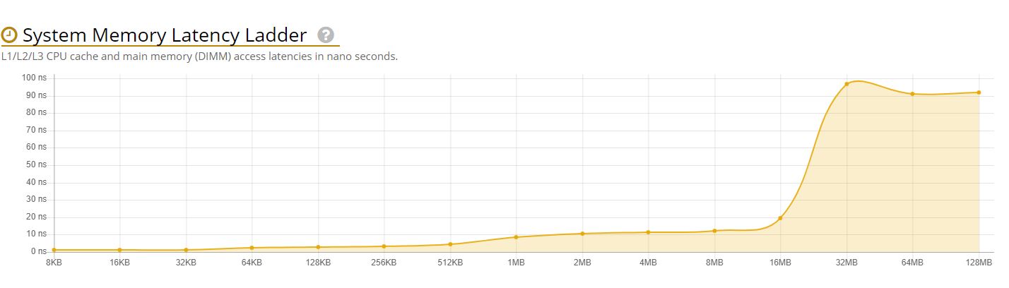 Το System Memory Latency Ladder της σελίδας μας δείχνει την καθυστέρηση των L1, L2, και L3 caches του δοκιμαστικού μοντέλου, καθώς και τα 32MB L3 μνήμης. Επίσης η δοκιμή έγινε με DDR4 Hynix μνήμη σε μόλις 1333MHz, κάτι που είναι κοινό για πρώιμη σιλικόνη. Από την άλλη, βλέπουμε ότι στην ίδια συχνότητα με τον 2700X, υπάρχει περίπου 13% βελτίωση σε single-core απόδοση (IPC).