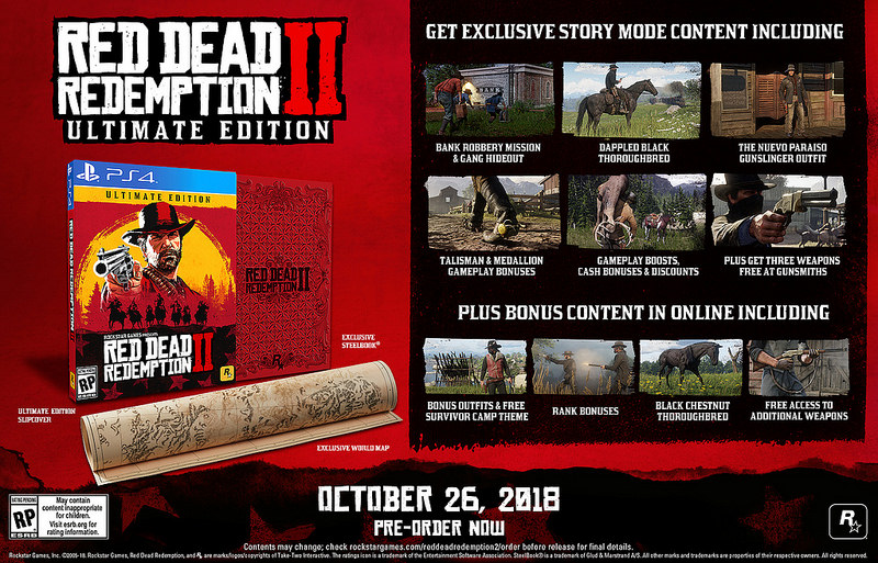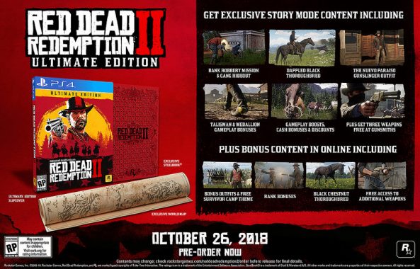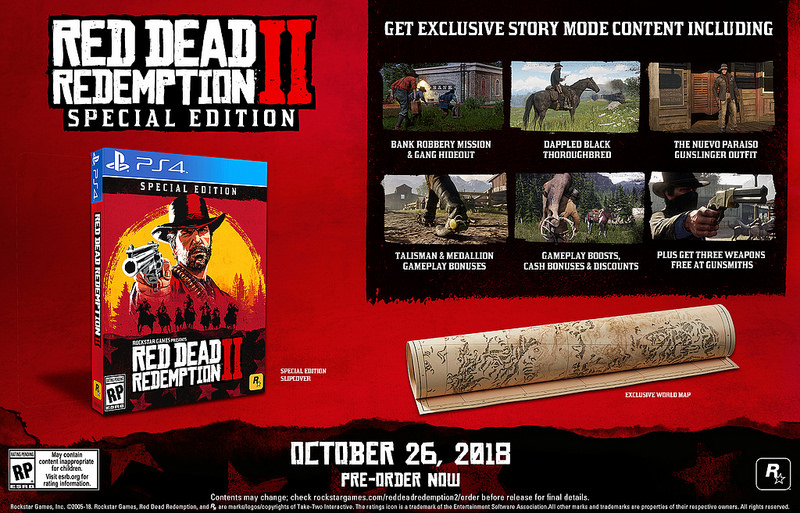 Όπως είναι φυσικό μετά την διαρροή που έγινε από το Xbox Store ανακοινώθηκαν πλεόν και επίσημα οι διάφορες limited εκδόσεις μαζί με τα pre-order bonuses για το Red Dead Redemption 2. Πάμε σιγά σιγά να δούμε με λεπτομέρειες τι προσφέρουν.