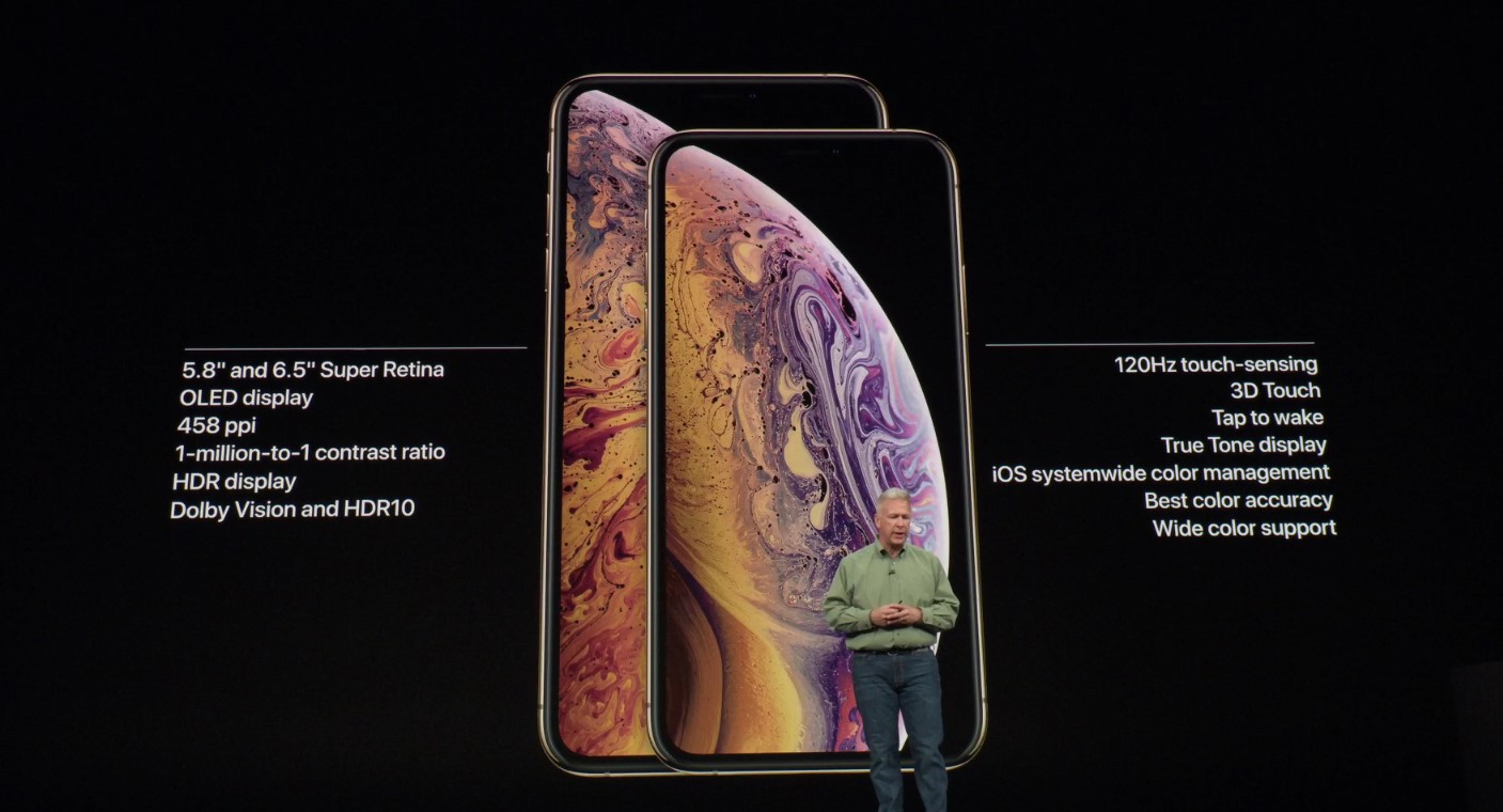 Το επόμενο iPhone είναι και το μεγαλύτερο iPhone που φτιάχτηκε ποτέ και “ακούει” στο όνομα iPhone XS Max, διαθέτει οθόνη 6,5″ ανάλυσης 2688 x 1242 pixels και pixel density στα 458ppi. Το μαγικό είναι ο ρυθμός μετάδοσης της οθόνης που αγγίζει τα 120Hz, το συναντήσαμε πρώτα στο iPad Pro 10,5″ και είναι η πρώτη φορά που το βρίσκουμε σε iPhone.