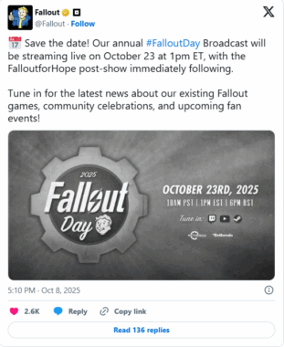 Πριν από λίγη ώρα η Bethesda ανακοίνωσε την ημερομηνία και ώρα του Fallout Day 2025.