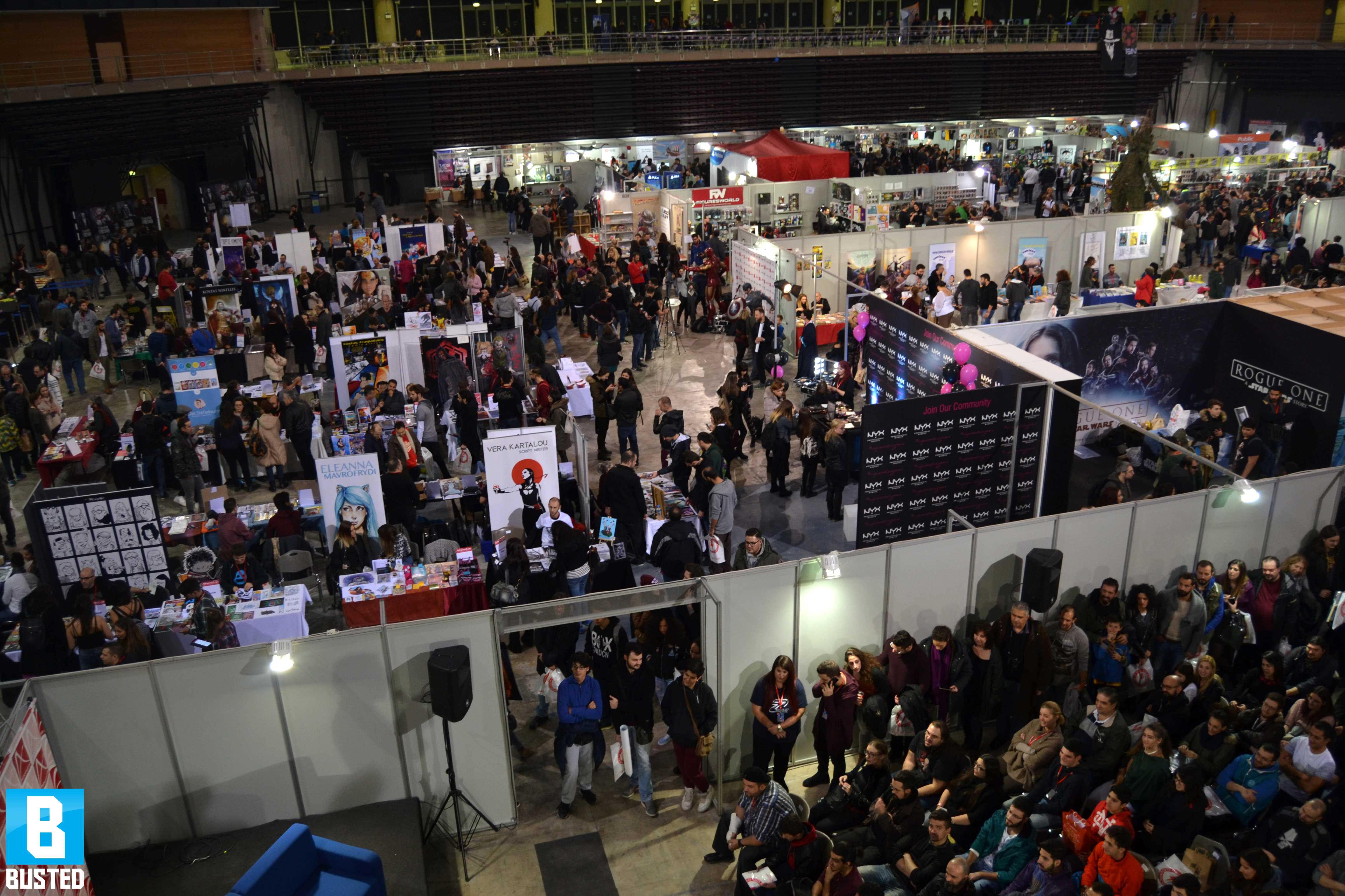 Η AthensCon έλαβε τόπο για δεύτερη χρονιά στο Κλειστό Γήπεδο Tae Kwon Do Φαλήρου, στις 3 & 4 Δεκεμβρίου. Ένα Σαββατοκύριακο γεμάτο Comics, Cosplay, Games, Geeks και Pop κουλτούρα. Η ανταπόκριση του κόσμου ήταν φέτος μεγάλη με τουλάχιστον πάνω από 10.000 άτομα να περνούν το κατώφλι του εκθεσιακού χώρου. Το ισχυρό παρών του έδωσε και το Busted το οποίο και κατάφερε να απαθανατίσει για εσάς πλούσιο υλικό. Την εκδήλωση τίμησαν επίσης με την παρουσία τους, μεγάλοι εικονογράφοι του εξωτερικού, Cosplayers αλλά και μεγάλα εγχώρια ονόματα.