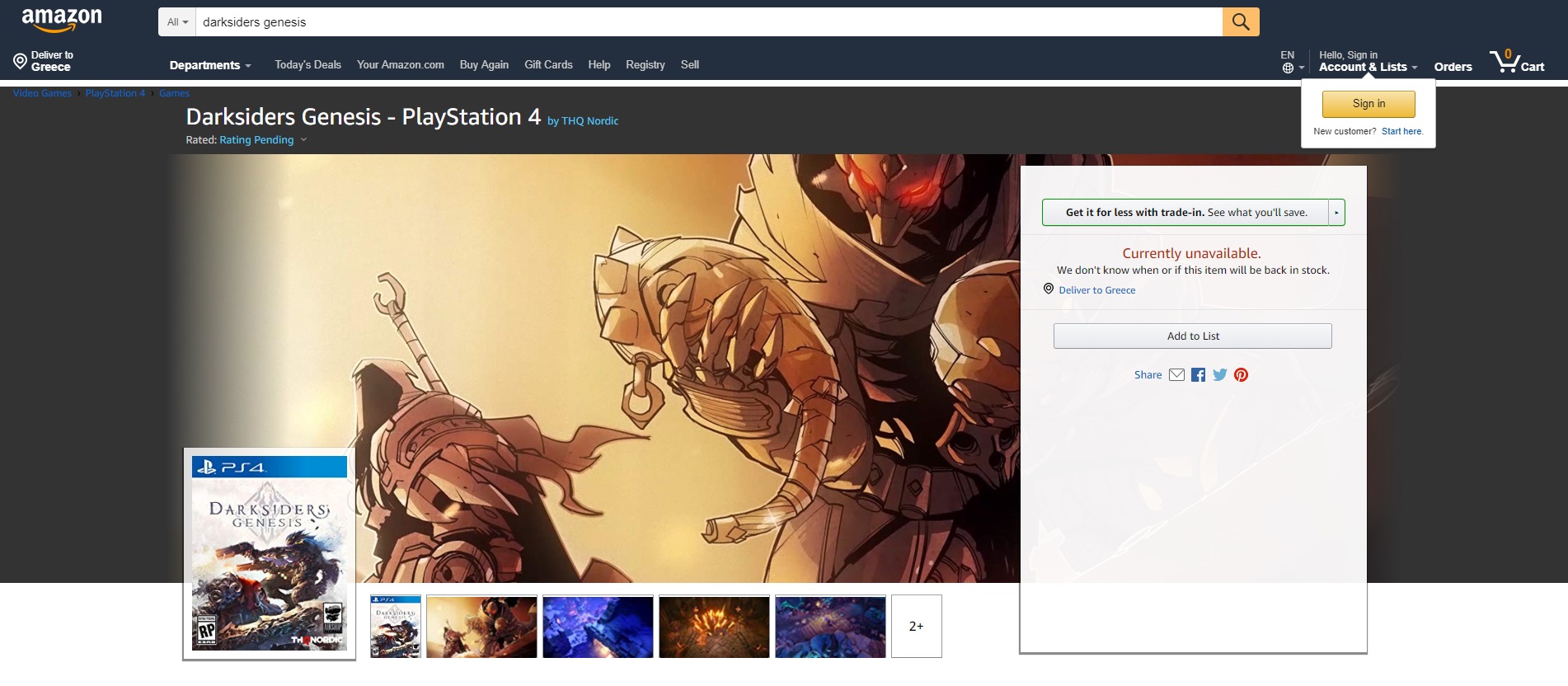 Και όσο πιο κοντά είμαστε στην E3, οι διαρροές από το amazon (το Αμερικάνικο αυτή τη φορά) συνεχίζονται, με το Darksiders Genesis της THQNordic να αποκαλύπτεται πριν την ώρα του.