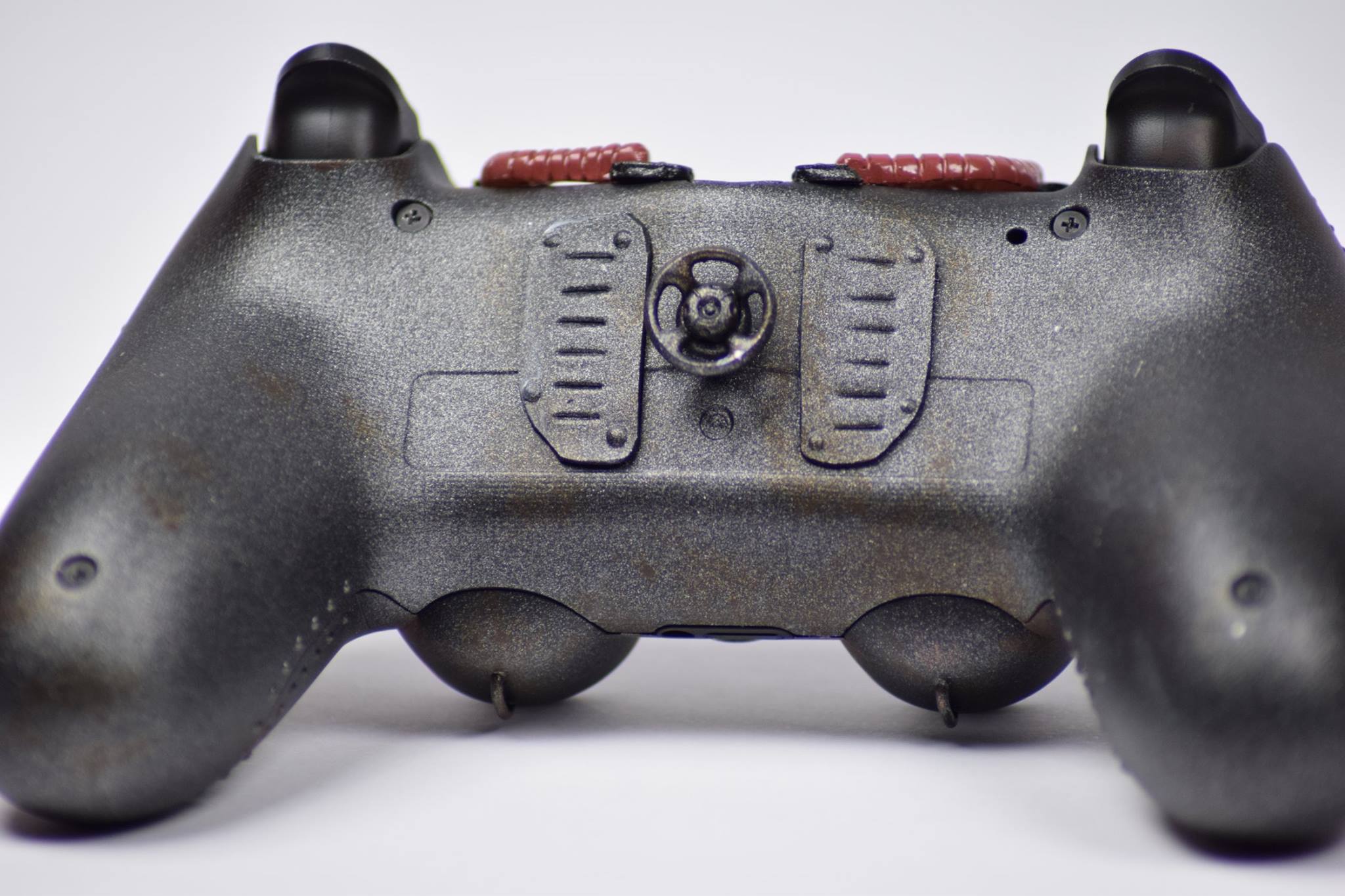 To τροποποιημένο DualShock 4 διαθέτει αρκετά features, συμπεριλαμβανομένου ενός vault τροχού που είναι τοποθετημένος στο πίσω μέρος. Ίσως να μην φαίνεται τόσο άνετο στη χρήση, αλλά σίγουρα κερδίζει λόγω της εξαιρετικής του εμφάνισης, μιας και η σκουριασμένη υφή του αναφέρεται πλήρως σε post apocalyptic χαρακτηριστικά. Σίγουρα έπεσε πολύ δουλειά αλλά οι κόποι ανταμείφθηκαν.