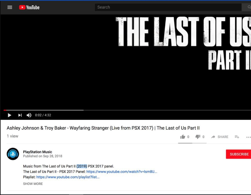 Μια διαρροή ωστόσο έρχεται να αλλάξει αυτά τα δεδομένα, αφού σύμφωνα με το επίσημο κανάλι του PlayStation, PlayStation Music, σε ένα theme song του παιχνιδιού που ανέβασαν πρόσφατα, έδειξε ότι το The Last Of Us: Part II θα κυκλοφορήσει μέσα στο 2019. Αυτό σημαίνει ότι θα πρέπει, κατά την φήμη, να περιμένουμε το παιχνίδι, αρκετά πιο σύντομα από όσο νομίζαμε, αφού πολλοί κάνανε λόγο για το 2020.