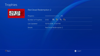 Όπως θα δείτε παρακάτω στις εικόνες το Red Dead Redemption 2 θα έχει 52 trophies συνολικά από τα οποία κάποια θα πρέπει να τα κερδίσουμε στο online κομμάτι του παιχνιδιού που θα έρθει τον Νοέμβριο. Ένα από αυτά χρειάζεται να φτάσουμε τον χαρακτήρα μας 50 Rank στο online (καλή τύχη με αυτό).