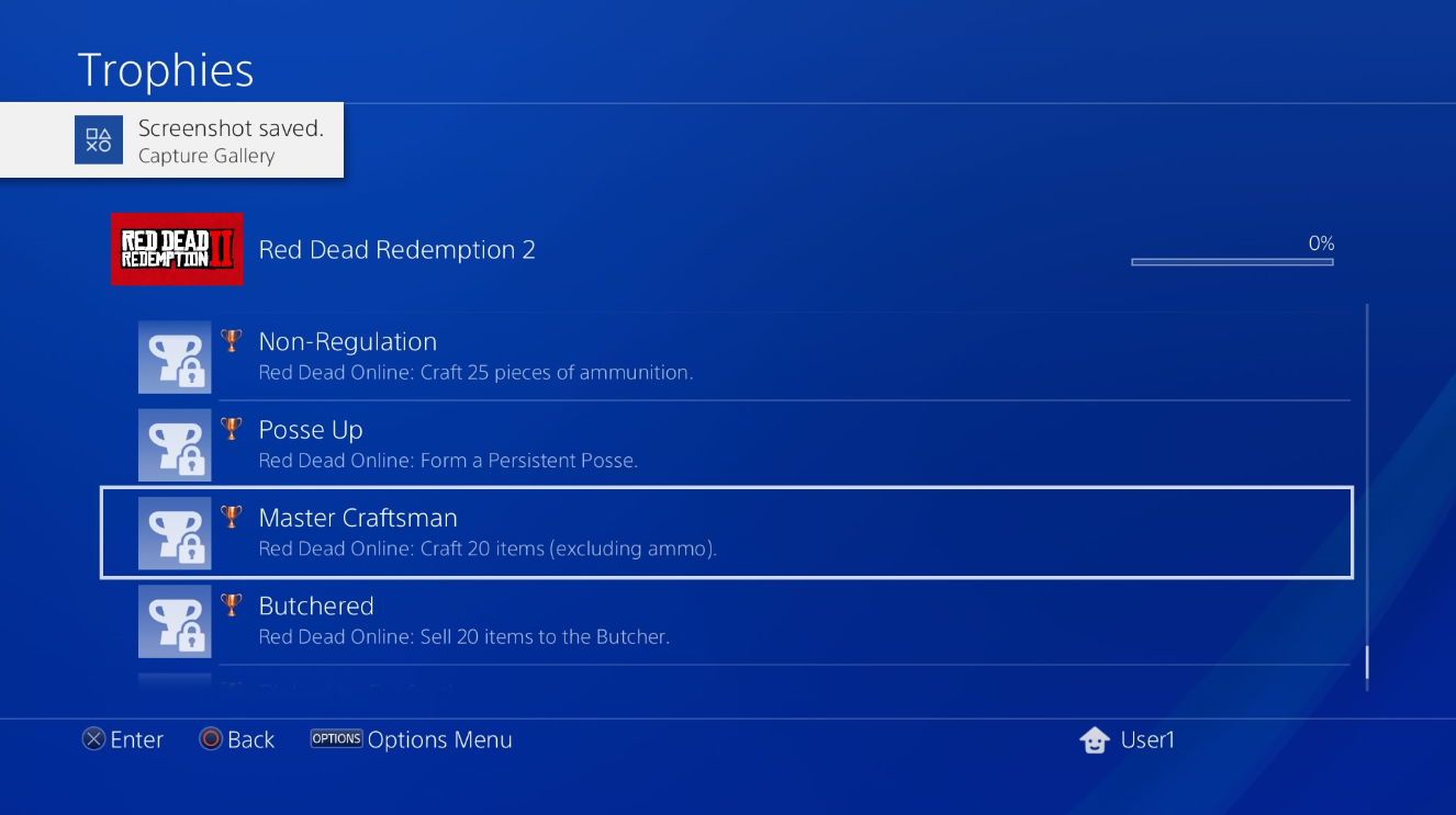 Bronze – Master Craftsman – Red Dead Online: Craft 20 items (excluding ammo).