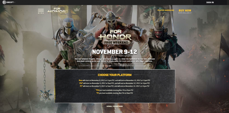 Για δεύτερη φορά σε λιγότερο από ένα έτος μετά την κυκλοφορία του, η Ubisoft διαθέτει το For Honor δωρεάν για περιορισμένο χρονικό διάστημα. Η πρώτη φορά έγινε 10 Αυγούστου, και τώρα είναι πολύ καλή ευκαιρία να το δοκιμάσουν όσοι έλειπαν διακοπές.
