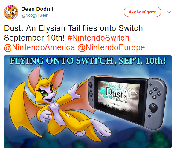 Πρόκειται για το Dust: An Elysian Tail που κυκλοφόρησε αρχικά το 2012 στο Xbox 360 ως Arcade τίτλος και αργότερα κυκλοφόρησε και για PC, καθώς και PlayStation 4. Όσοι τυχόν δεν έχουν ακουστά τον συγκεκριμένο τίτλο, πρόκειται για έναν 2D Action RPG τίτλο με πολύ καλές κριτικές για τον σχεδιασμό του και το σύστημα μάχης (και η ανάπτυξη έγινε από μόλις ένα άτομο).