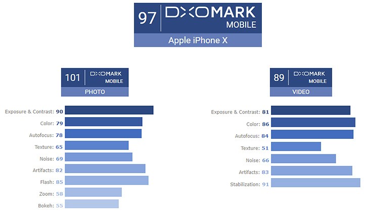 Το DxOMark, το πιο γνωστό site για δοκιμές των καμερών των smartphones αποφάνθηκε ότι την καλύτερη κάμερα στα κινητά την έχει το iPhone X. Οι testers έδωσαν στην ναυαρχίδα της Apple το σκορ των 101 μονάδων όσον αφορά στην φωτογραφία ρίχνοντας από την κορυφή το Galaxy Note 8 και Mate 10 Pro που είχαν “σκοράρει” 100 πόντους. Συγκεκριμένα, το DxOMark αναφέρει ότι το iPhone X έχει πολύ καλή έκθεση και ακρίβεια στα χρώματα σε οποιαδήποτε συνθήκη φωτισμού. Η κάμερα της συσκευής έδωσε πολύ καλή λεπτομέρεια σε φωτογραφίες με ή χωρίς χρήση zoom και έδωσε μία φυσικότητα στα bokeh.
