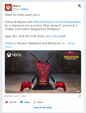 Ένα νέο Xbox Series X controller έκανε την εμφάνισή του σε Post του Xbox. Συγκεκριμένα το Xbox Wire αποκάλυψε το νέο μοχλό ο οποίος είναι αφιερωμένος στον Deadpool.