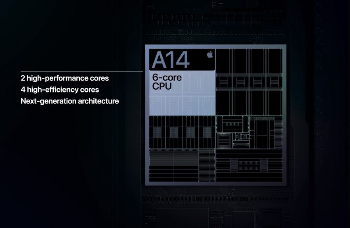 Όπως αναμενόταν στο εσωτερικό του υπάρχει ο A14 Bionic με έξι πυρήνες (δύο για ισχυρές επιδόσεις και τέσσερις για καλή αυτονομία) ενώ η GPU είναι τετραπύρηνη. Η ίδια η εταιρεία υποστηρίζει ότι ο νέος A14 Bionic είναι 50% πιο γρηγορος και στην CPU και στην GPU όχι μόνο σε σχέση με πέρυσι αλλά και γενικά σε σύγκριση με οποιοδήποτε άλλο mobile SoC.