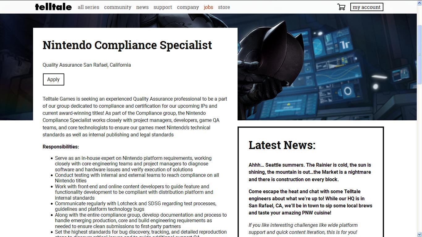 Σύμφωνα με τις θέσεις εργασίας της εταιρείας, αναζητεί ένα άτομο ο οποίος θα είναι κατα κάποιο τρόπο Nintendo Specialist και θα μπορεί να επιλυεί πιθανόν προβλήματα που θα προκύπτουν κατα την ανάπτυξη νέων τίτλων. Φυσικά η εμπειρία σε παλαιότερα συστήματα της Nintendo θα είναι το ιδανικό για αυτήν την θέση εργασίας.