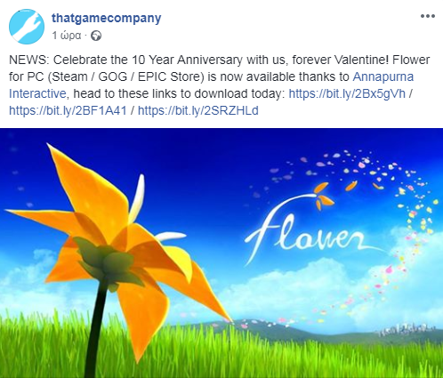 Γιορτάζοντας τα 10 χρόνια κυκλοφορίας αλλά και την ημέρα των ερωτευμένων, η thatgamecompany ανακοίνωσε την PC κυκλοφορία του Flower.
