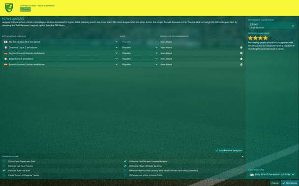 Αφήνοντας πίσω μας τον πρόλογο θα περάσουμε στα ενδότερα του παιχνιδιού που με την πρώτη ματιά το User Interface παραμένει στα ίδια γνώριμα επίπεδα με τον προκάτοχο του. Σημαντική προσθήκη φέτος στον τίτλο είναι η δημιουργία του δικού σας avatar με την προσθήκη της φωτογραφία σας όπου με λίγα λόγια μπορείς να δημιουργήσεις το πρόσωπο σου μέσα στο παιχνίδι. Πέρα από αυτό σας δίνεται η δυνατότητα παραμετροποίησης σε πολλά χαρακτηριστικά του προσώπου και επίσης έχουν προστεθεί και στυλιστικές προτάσεις για το πως θα φαίνεστε σαν υποψήφιος προπονητής. Αφήνοντας το δημιουργικό κομμάτι του avatar μας ,περνάμε στην δημιουργία του νέου save μας όπου μπορούμε φέτος να ξεκινήσουμε ένα γρήγορο παιχνίδι με την ομάδα που επιθυμούμε. Βέβαια οι βετεράνοι του είδους θα επιλέξετε την άλλη οδό, αυτή της επιλογής των πρωταθλημάτων που εσείς επιθυμείτε και την επιλογή της βάσης δεδομένων για το αν θα είναι μικρή μεσαία ή μεγάλη. Ανάλογα τις επιλογές σας θα έχει αντίκτυπο στον τομέα των επιδόσεων του υπολογιστή σας. Για να μη σας τρομάξω το παιχνίδι δεν έχει τρομερές απαιτήσεις απλά αν το εμπλουτίσετε με πολλά πρωταθλήματα ίσως μελλοντικά το Save σας να γίνει κατά κάποιο τρόπο πιο αργό. Κάποια στοιχεία τα αναφέρω διότι μπορεί να υπάρχουν και νέοι gamers οι οποίοι θα ασχοληθούν για πρώτη φορά φέτος με τον τίτλο.