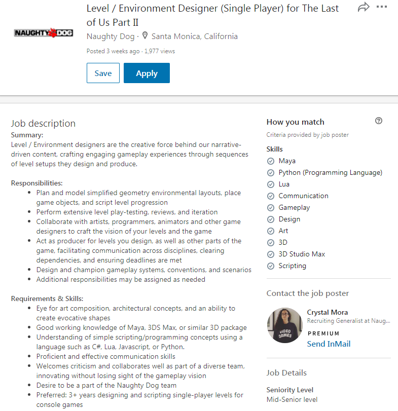 Αυτό βέβαια έρχεται σε αντίθεση με μια αγγελία εργασίας της Naughty Dog στα μέσα Δεκεμβρίου (μέσω LinkedIn), όπου αναζητούν Level / Environment Designer για το The Last of Us Part 2, όπου από τις απαιτήσεις φαίνεται να αναζητούν άτομο για το στήσιμο επιπέδων και πρόοδο του παίκτη. Ίσως βέβαια να πρόκειται για κάποιο πιθανό DLC και όχι απαραίτητα για το campaign.