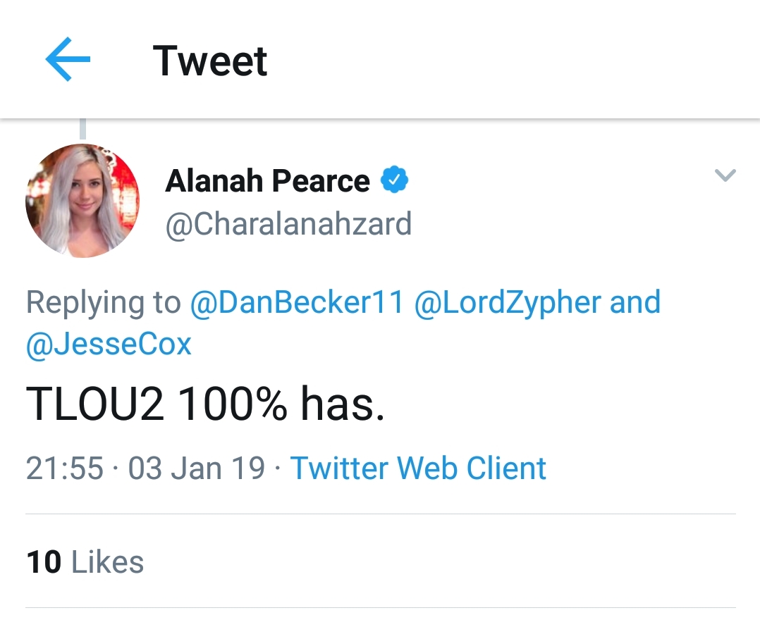 Αυτό βέβαια έρχεται σε αντίθεση με μια αγγελία εργασίας της Naughty Dog στα μέσα Δεκεμβρίου (μέσω LinkedIn), όπου αναζητούν Level / Environment Designer για το The Last of Us Part 2, όπου από τις απαιτήσεις φαίνεται να αναζητούν άτομο για το στήσιμο επιπέδων και πρόοδο του παίκτη. Ίσως βέβαια να πρόκειται για κάποιο πιθανό DLC και όχι απαραίτητα για το campaign.