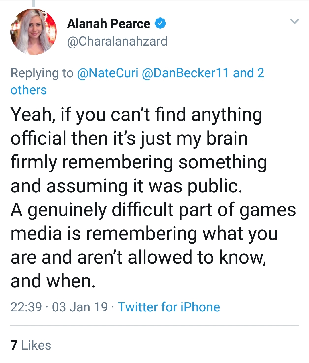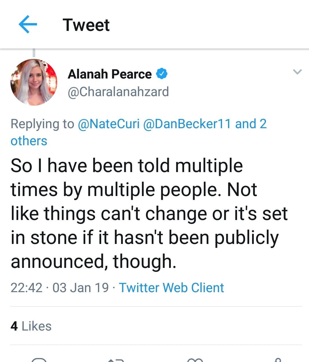 Αυτό έρχεται να ακυρώσει η Alanah Pearce, πρώην editon του IGN και πλέον μέλος της Rooster Teeth, καθώς σε μερικά tweets (που πλέον έχουν διαγραφεί) αναφέρει την κυκλοφορία μέσα στο τρέχον έτος. Όπως δήλωσε η ίδια, άκουσε από πηγές ότι αναμένεται να κυκλοφορήσει μέσα στο 2019. Βέβαια ακόμη δεν είναι κάτι επιβεβαιωμένο, οπότε πάρτε ότι διαβάσετε ως φήμη.