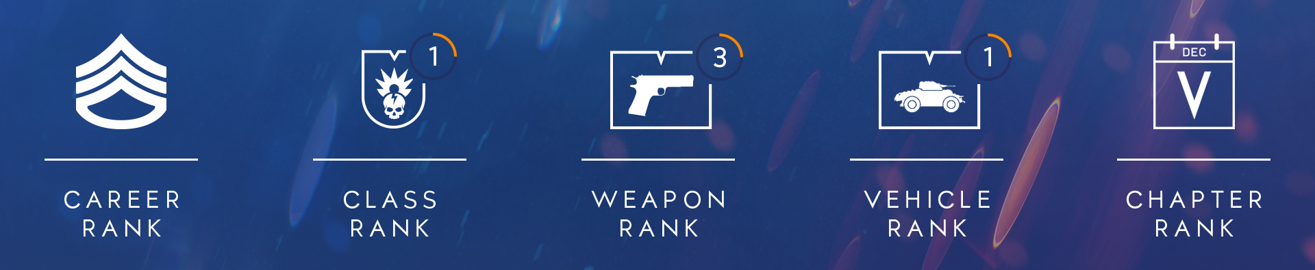 This is your overall rank that increases with nearly everything you do in Battlefield V. Career Rank is represented by the familiar military rank structure (such as Private, Sergeant, Captain, and others), and increases with whatever game mode, weapon, or class you choose to play. As you gain Career Rank, you’ll earn Company Coin and unlock vehicles to add to your Company.