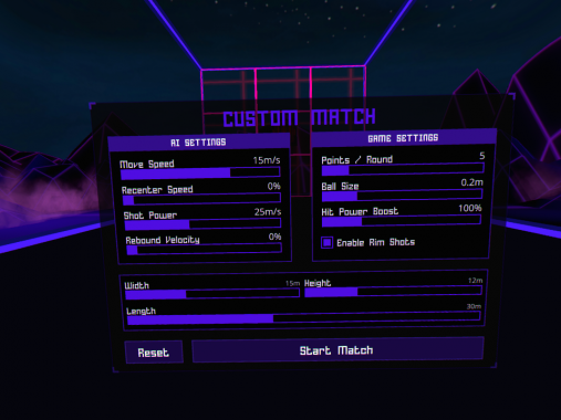 Επιλογές του custom match. Αν βάλουμε τις διαστάσεις τέρμα τότε μιλάμε για ένα τεράστιο γήπεδο! (πρώτη εικόνα)