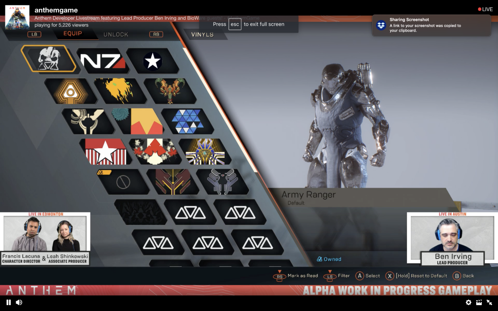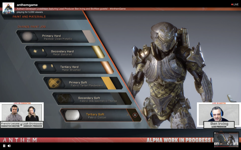 Ένα δεύτερο Stream πραγματοποιήθηκε χτές στο Twitch όπου η Bioware μας έδωσε να καταλάβουμε το βάθος του Customisation που θα μπορούμε να κάνουμε στα Javelin μας στο Anthem.