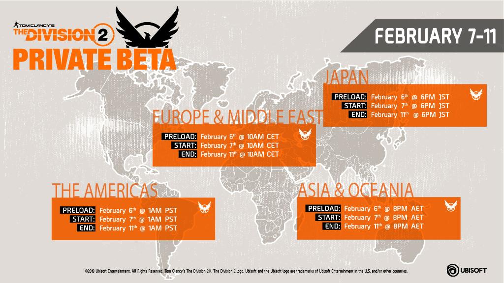 Η κλειστή Beta λοιπόν του Division 2 θα διαρκέσει από σήμερα 7/2 έως Κυριακή 11/2 και ώρα Ελλάδας θα ξεκινήσει στης 11:00 π.μ.