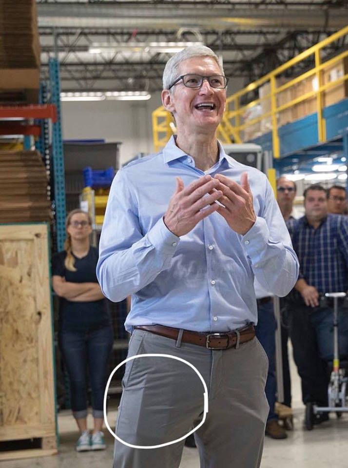 Άλλοι αστειευόμενοι λένε πως ο CEO της Apple έχει στην κατοχή του ένα Galaxy S8+, πολύ πιθανό αν σκεφτεί κανείς πως κοντεύει να βγει από το παντελόνι του, αλλά ίσως απλά ο ίδιος να έχει και ένα πρωτότυπο του επόμενου iPhone.