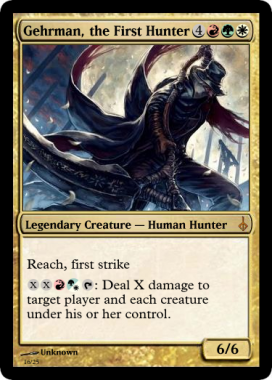 Ο χρήστης Reddit με το ψευδώνυμο vNocturnus αποφάσισε να ενώσει αυτούς τους δυο κόσμους φτιάχνοντας κάρτες Magic με πλάσματα και χαρακτήρες από τον κόσμο του Bloodborne.