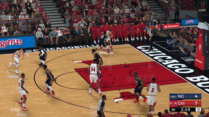 Η αναβάθμιση όμως δεν σταματάει εκεί, φέτος βλέπουμε νέους μηχανισμούς στο shoot αλλά και στον τρόπο κλεψίματος. Ένας πονοκέφαλος του προηγούμενο NBA 2K18 ήταν ότι ο διαιτητής έδινε πολύ εύκολα φάουλ όταν προσπαθούσαμε να κλέψουμε την μπάλα από τον αντίπαλο, ευτυχώς αυτό δεν υπάρχει πλέον καθώς με τις κατάλληλες αλλαγές είναι πλέον πιο εύκολο να πιέσουμε και να “πέσουμε” στην μπάλα χωρίς φάουλ. Όσων αφορά τώρα τα shoots βλέπουμε την μπάρα δύναμης να έχει υποστεί τέτοια αναμόρφωση που νομίζω ότι πλέον είναι ένας ζωντανός οργανισμός μέσα στο παιχνίδι. Ο τρόπος που θα γεμίσει για να σουτάρουμε εξαρτάται από πολλές παραμέτρους όπως για παράδειγμα την κίνηση στα πόδια του παίκτη ή το αν βρίσκεται υπό πίεση ή υπό γωνία. Γενικά φαίνεται ότι έχει δοθεί ιδιαίτερη προσοχή στον μηχανισμό έτσι ώστε να εξαλειφθούν περιπτώσεις του παρελθόντος όπου ο Stephen Curry έβαζε τα πάντα και ήταν ασταμάτητος.