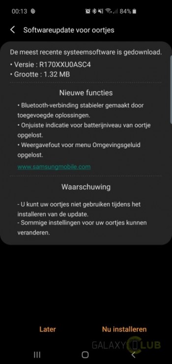 Η Samsung έδωσε και νέο update στα Galaxy Buds ύστερα από την πρώτη αναβάθμιση λίγες ημέρες πριν. Είναι μικρό με μόλις 1,32MB μέγεθος αλλά λύνει αρκετά μικροπροβλήματα.