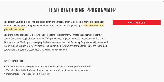 Αυτό μπορούμε να το συμπεράνουμε, από κάποια job listings που έβγαλε στην δημοσιότητα η Rocksteady. Σύμφωνα με αυτά, η Rocksteady χρειάζεται άμεσα έναν Lead Rendering programmer, ο οποίος θα πρέπει να δουλέψει σε έναν “υψηλά αναμενόμενο AAA τίτλο” που θα κυκλοφορήσει στις “κονσόλες επόμενης γενιάς“. Αν αυτά τα δύο στοιχεία δεν σας είναι αρκετά, από ότι φαίνεται η διάρκεια της δουλειάς θα πάρει τουλάχιστον “2+ χρόνια“.