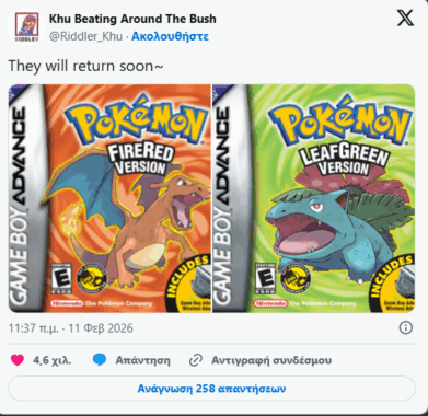 Όπως φαίνεται οι Pokemon Fire Red και Green Leaf επιστρέφουν στο κόσμο της Nintendo και του Switch.
