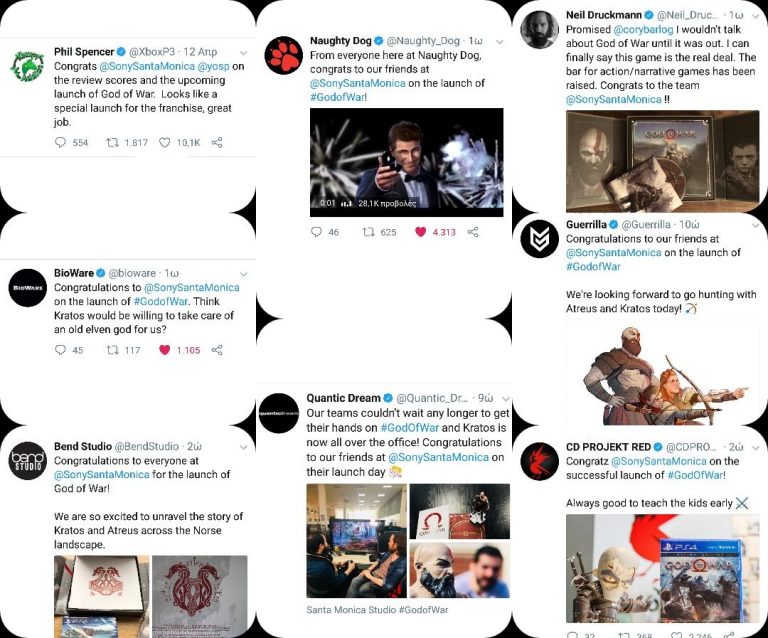 Με το επιτυχημένο Launch του God Of War που ακολούθησε τις άριστες κριτικές διάφοροι developers και άνθρωποι της βιομηχανίας σκόπευσαν να συγχαρούν την Santa Monica για το επίτευγμά της: