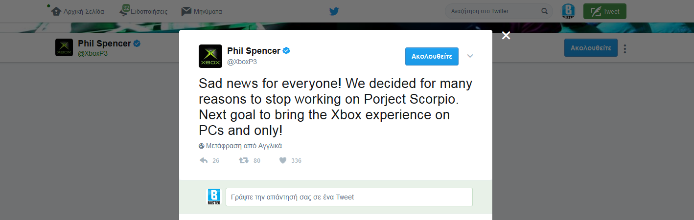 Δυσάρεστα νέα για όλους. Αποφασίσαμε για πολλούς λόγους να σταματήσουμε τη δουλειά μας πάνω στο Project Scorpio. Επόμενος στόχος να φέρουμε την εμπειρία του Xbox στα PC και μόνο!