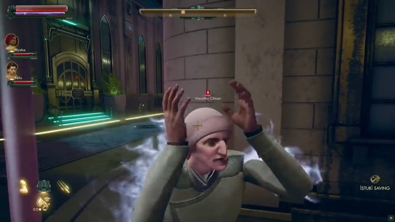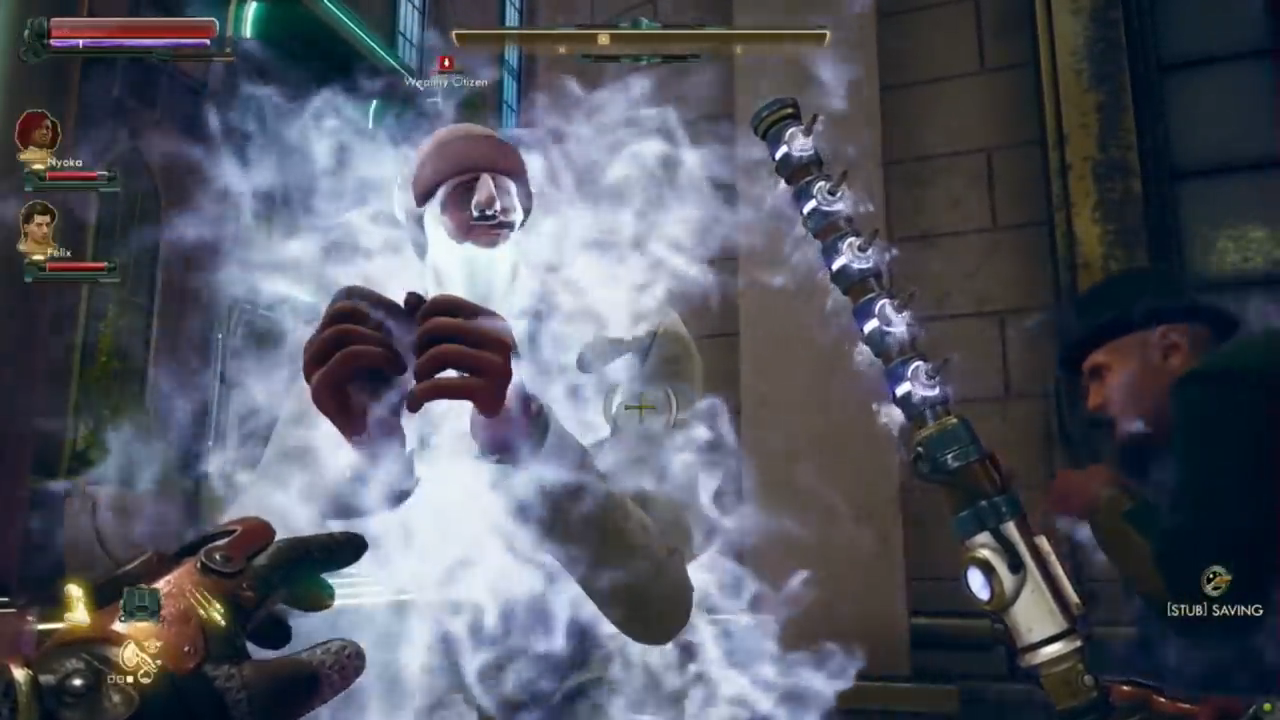 Πως όμως προέκυψε αυτό; Ήταν ηθελημένο; Η Obsidian παραδέχτηκε ότι σε κάποιο Build του Outer Worlds ειχαν βρει κάποιο Bug που παραμόρφωνε τα πρόσωπα και τους έκανε να γελάνε. Τι καλύτερο λοιπόν από το να μετατρέψουν το Bug αυτό σε όπλο; Δείτε τα αποτελέσματα έπειτα από 4 διαφορετικά Hits παρακάτω:
