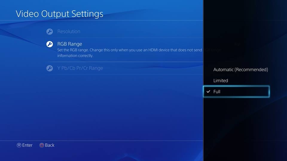 Το Full RGB στο PS4 και PC RGB στο XBox One έχει τιμές από 0 έως το 255 με το με το 0 να είναι το μαύρο και το 255 το λευκό.