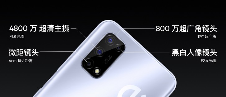 Το Realme V5 έχει LCD οθόνη 6.5 ιντσών με ρυθμό ανανέωσης 90Hz και ratio 20:9. Στην επάνω αριστερή γωνία έχει τοποθετηθεί κάμερα 16MP μέσα σε notch. Στο πλάι υπάρχει ο αναγνώστης δακτυλικών αποτυπωμάτων που λειτουργεί και ως power button. Πίσω έχουν τοποθετηθεί τέσσερις κάμερες με τον κύριο φακό να είναι στα 48MP. Η δεύτερη κάμερα είναι μία ultrawide angle με FoV 119 μοιρών στα 8MP. Οι δύο φακοί που ολοκληρώνουν το set up είναι ένας macro αισθητήρας και ένας depth που βοηθάει στο να θολώνει το backround.