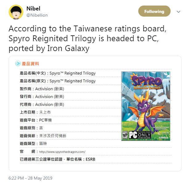Όπως έγινε και με το Crash NSane Trilogy, ήταν μόλις θέμα χρόνου να δούμε και το Spyro Reignited Trilogy να έρχεται σιγά-σιγά σε PC.