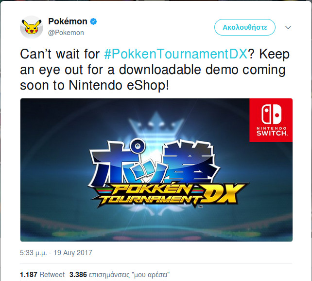 Το Pokkén Tournament DX έρχεται αποκλειστικά στο Nintendo Switch στις 22 Σεπτεμβρίου.