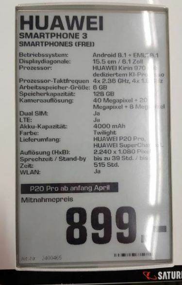 Η Huawei ετοιμάζεται για την αυριανή παρουσίαση των νέων ναυαρχίδων της για το 2018 όμως τίποτα δεν έχει μείνει κρυφό από τις διαρροές το προηγούμενο διάστημα. Και αν τα περισσότερα από αυτά τα leaks δεν επιβεβαιώνονται, ήρθαν οι φωτογραφίες από το κατάστημα Saturn της Γερμανίας με τα ταμπελάκια να μας δίνουν στο… πιάτο ό,τι ουσιαστικά θα βλέπαμε αύριο στην παρουσίαση.