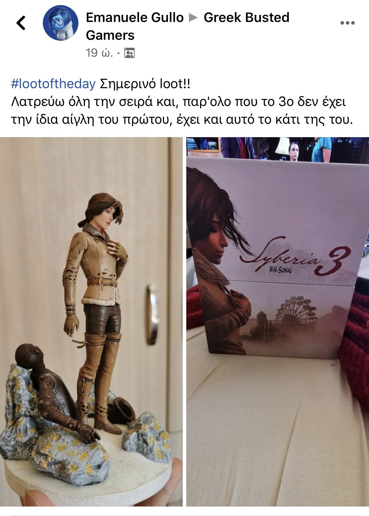 Τέλος ο Μανώλης με την Collector’s του Syberia 3, ένα εξαιρετικό άγαλμα με πολύ λεπτομέρεια για να συνοδεύσει ένα εξαιρετικό παιχνίδι.