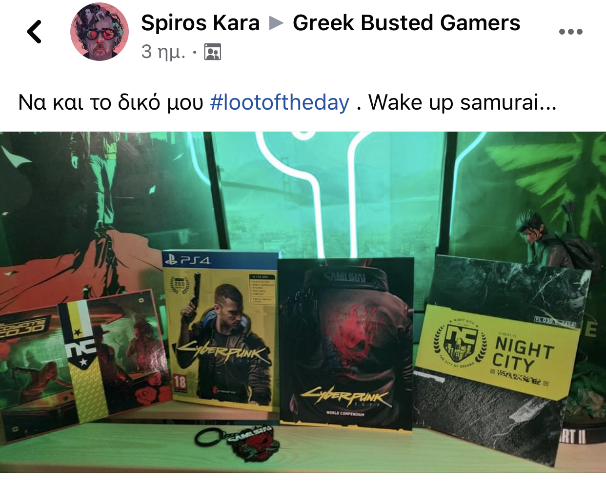 Την περασμένη εβδομάδα είχαμε την κυκλοφορία του Cyberpunk 2077 και πάρα πολλά #lootoftheday ήταν από εκεί. Έτσι για να έχουμε ποικιλία επέλεξα μόνο τις δύο που είχαν την καλύτερη, για μένα φωτογραφία.