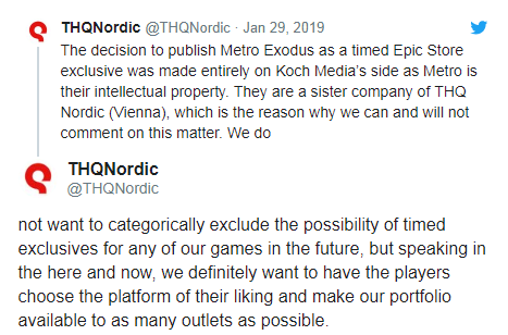 Πριν μερικές ημέρες, σας ενημερώσαμε πως και το Metro Exodus θα είναι χρονική αποκλειστικότητα του Epic Games Store, κυκλοφορώντας στο Steam ένα έτος αργότερα. Όπως μπορείτε να φανταστείτε, το κοινό του PC gaming μόνο θετικά δεν μπόρεσε να δεί μια τέτοια κίνηση, ειδικά όταν πρόκειται για έναν τόσο πολυαναμενόμενο τίτλο.