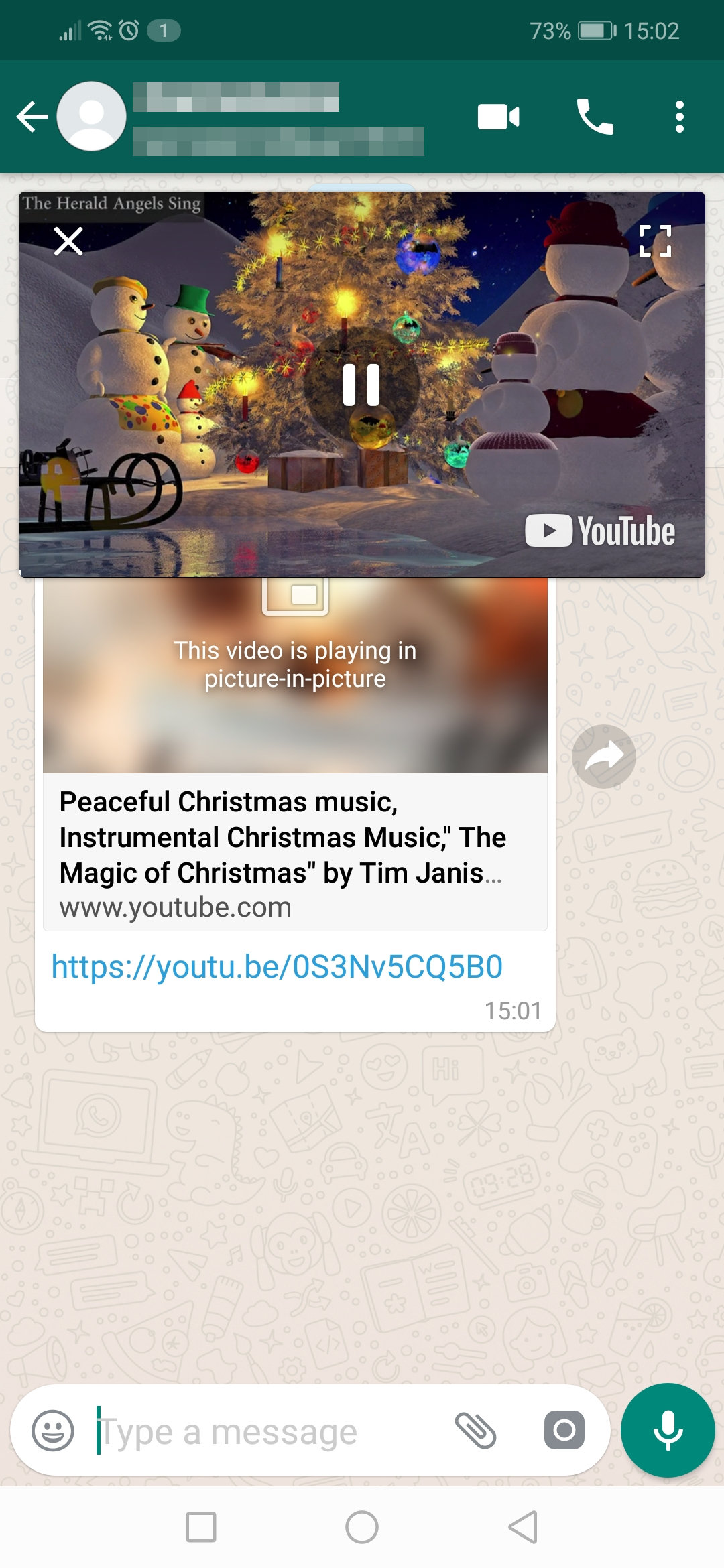 Ενώ οι χρήστες iPhone μπορούν να χρησιμοποιούν τη λειτουργία αυτή από τις αρχές του 2018, στο Android μόλις πρόσφατα έγινε διαθέσιμη με το τελευταίο update που πήρε το app. Πρακτικά το PiP δίνει την δυνατότητα σε αυτόν που χρησιμοποιεί την εφαρμογή να δει βίντεο από το Υoutube ή το Facebook ή το Instagram απευθείας μέσα από την εφαρμογή. Κάθε φορά που λαμβάνετε έναν σύνδεσμο από βίντεο στο chat του WhatsApp, θα έχετε πλέον την επιλογή να το δείτε χρησιμοποιώντας το PiP mode χωρίς να χρειάζεται να βγείτε από το application ή να χρησιμοποιήσετε κάποια third party εφαρμογή
