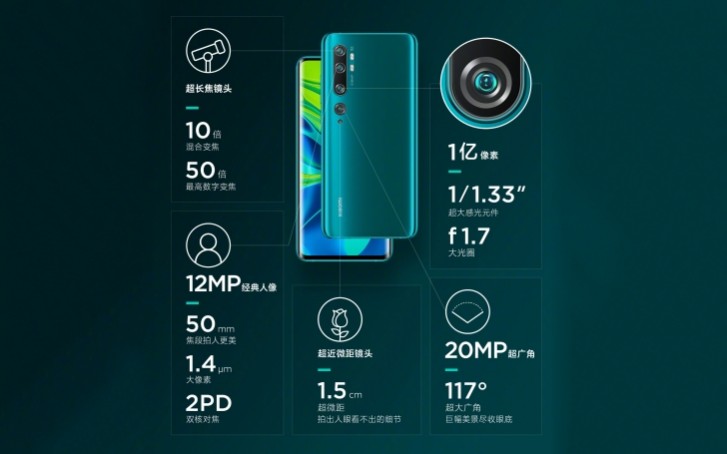 Το πιο σπουδαίο χαρακτηριστικό του Mi CC9 Pro είναι σίγουρα οι κάμερες στο πίσω μέρος. Πέντε φακοί δουλεύουν για να προσφέρουν τα καλύτερα αποτελέσματα σε όλες τις συνθήκες. Ο κύριος φακός είναι στα 108MP και συγκεκριμένα ο ISOCELL Bright HMX της Samsung. Η Xiaomi ανακοίνωσε ότι το διάφραγμα του φακού αυτού είναι F/1.7 8P (μόνο στην Premium Edition), κάνοντάς το έτσι το πρώτο smartphone παγκοσμίως με τέτοιο σένσορα. Επιπλέον υπάρχει ο telephoto φακός με OIS που μπορεί να αποδώσει 5x οπτικό zoom και μπορεί να φτάσει μέχρι 50x ψηφιακό. Ο τρίτος φακός είναι ultrawide με πεδίο λήψης 117 μοίρες ενώ η μικρότερη κάμερα από τις τέσσερις είναι ένας αισθητήρας macro 2-10cm. Και οι δύο αυτές κάμερες συνεργάζονται για να δώσουν εξαιρετικές λεπτομέρειες σε κοντινές λήψεις απόστασης 1,5 εκατοστών. Η πέμπτη κάμερα βρίσκεται εκεί για εντυπωσιακά πορτραίτα και είναι 12MP telephoto με 2x zoom.